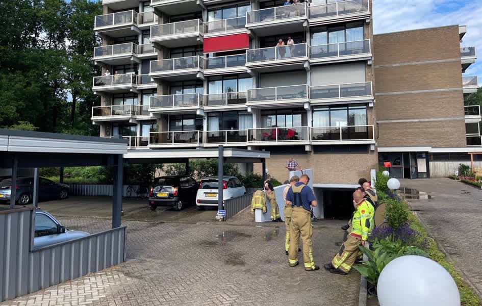De brandweer werd rond 17.00 uur gealarmeerd voor de situatie in de parkeergarage bij een appartementengebouw aan het Frerikshof. Ter plaatse bleek door de hevige regenval de garage gedeeltelijk onder te zijn gelopen. Brandweerlieden hebben vervolgens met een dompelpomp de locatie leeggepompt.