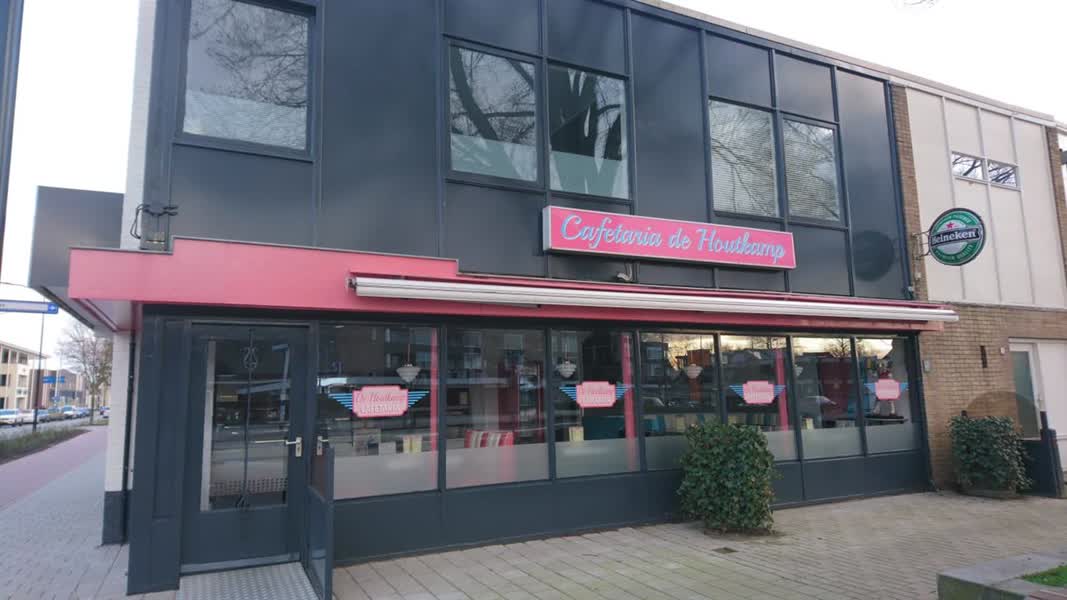 “Ik wil mensen laten proeven van de sfeer, vandaar de openingsactie”, zegt eigenaar Berry Boerman van Cafetaria De Houtkamp. Naast de bijzondere prijs, grijpt hij met de inrichting van de nieuwe zaak ook terug naar de jaren ’50. Zo prijkt aan de muur een grote afbeelding van Heebing Supermarkt, in 1959 gevestigd op dezelfde locatie aan de Dr. Huber Noodtstraat. De cafetaria is verder gevuld met gouden platen van Elvis, schaalmodellen van oldtimers en een authentieke inrichting. “Omdat wij teruggaan naar die stijl, vinden we het ook leuk om de naam Houtkamp terug te laten komen”, zegt Boerman.