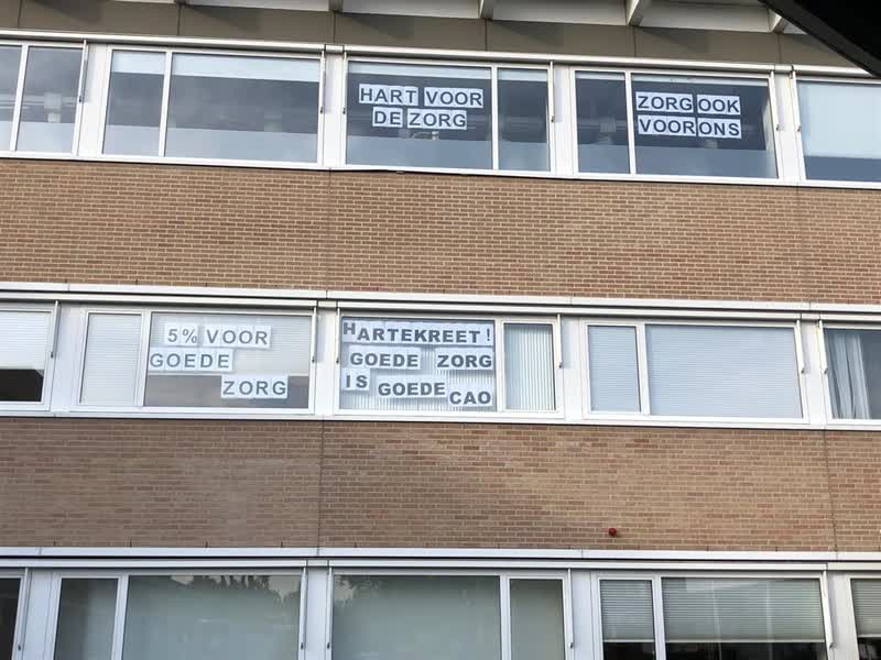 Aan de buitenzijde van het ziekenhuis is met verschillende leuzen te zien dat de staking leeft onder medewerkers. Ze zullen zich onder meer met een ludieke ‘trekker-actie’ laten horen. “Het leeft enorm”, vindt Van Ewijk, die zelf ook zorgen heeft over de toekomst van de zorg. “Wij delen de zorgen van de werkdruk, die is hoog. De zorgvraag is onverminderd hoog en de eisen die worden gesteld nemen toe. Mijn zorg is ook dat het personeelsbestand vergrijst, er zijn minder jongeren om het werk te doen. Naar de toekomst toe moeten we er alles aan doen om een goede werkomgeving te blijven.”
