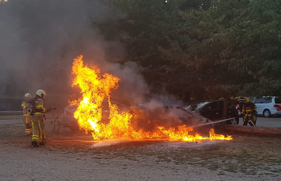 De oorzaak is onbekend, maar mogelijk gaat het om een technisch mankement. Overige auto’s op de parkeerplaats zijn door de brandweer natgehouden om schade te voorkomen.