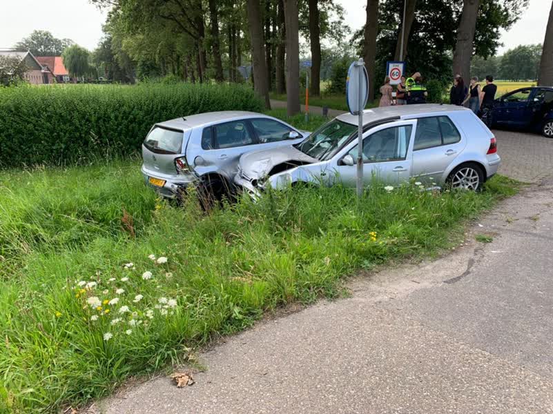 Beide bestuurders reden rond 13.00 uur in de richting van Haaksbergen toen het misging. De voorste auto sloeg af richting de Hoge Haarweg, maar de achterliggende bestuurder had dit niet in de gaten met een aanrijding tot gevolg. Beide voertuigen kwamen door de botsing in de berm terecht.