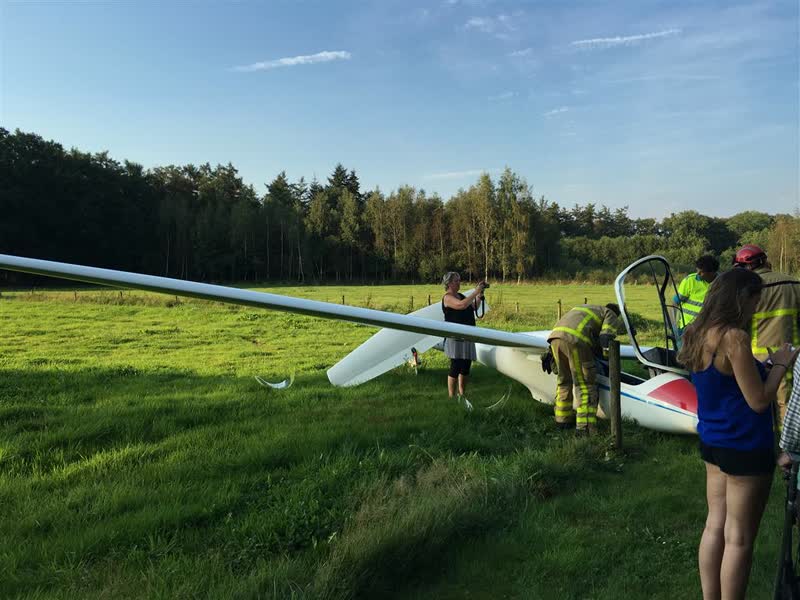 De piloot is uiteindelijk voor medische controle overgebracht naar het ziekenhuis. Het zweefvliegtuig raakte beschadigd bij de harde landing.