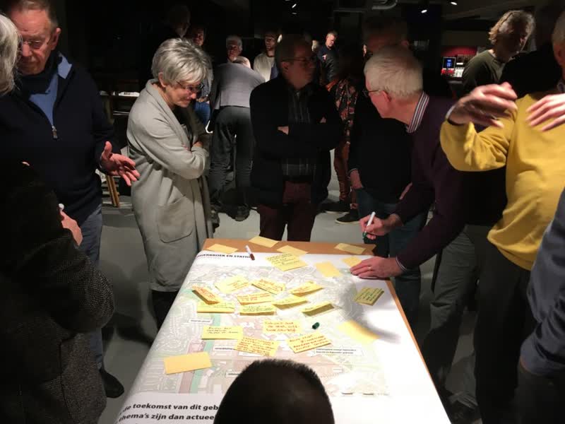 Een zestigtal inwoners is op de eerste avond afgekomen, waarop kan worden meegedacht over de toekomst van het historische centrum, Hamburgebroek en de omgeving van het station. Daarbij draait het om vijf verschillende thema's die gaan over een aantrekkelijk centrum, wonen, leren en werken, duurzaamheid en een groener landschap, Op verschillende panelen en plattegronden worden post-its geplakt, waarbij de ideeen alle kanten op gaan.