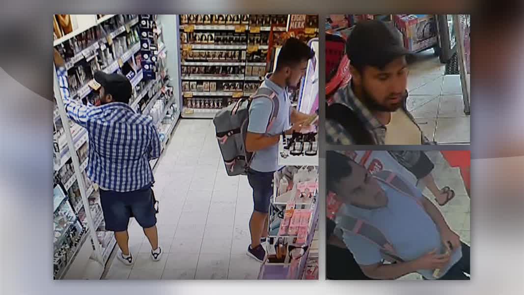 Op bewakingsbeelden die vrijgegeven werden in een uitzending van Bureau GLD is te zien hoe één van de twee mannen met een deodorant bus rondloopt, terwijl de andere man een schap met crèmes leeghaalt en in zijn tas stopt. Wanneer de man met de tas vol producten naar buiten loopt gaat het alarm af. Zijn partner loopt daarop naar de kassa en verontschuldigt zich aan het personeel dat hij te dichtbij het beveiligingspoortje kwam. Zo kon zijn handlanger ongehinderd wegkomen.