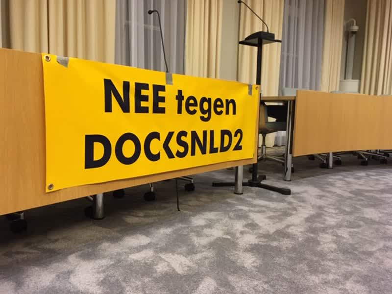 Tientallen inwoners van Azewijn en Netterden zijn maandagavond opnieuw naar de raadszaal in 's-Heerenberg gekomen. Met een spandoek waarop staat 'Nee tegen DocksNLD2' uiten de inwoners opnieuw hun