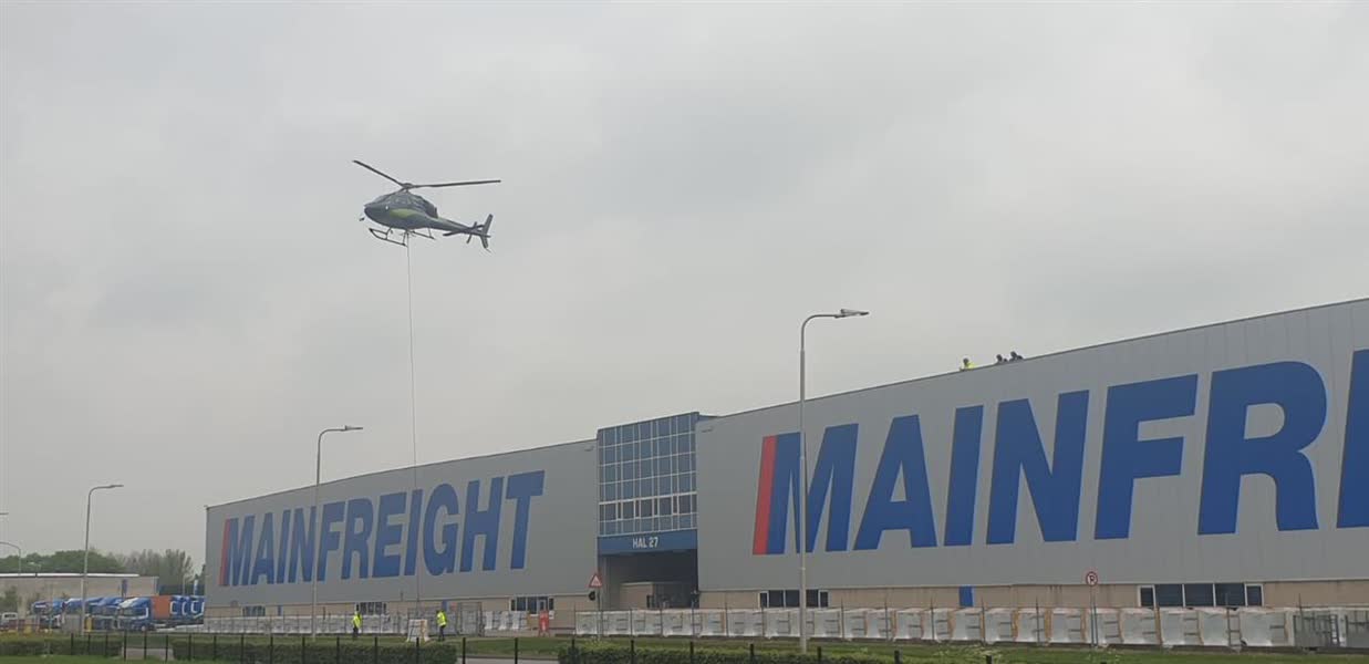 "Ik heb nog niet eerder meegemaakt dat een helikopter dit soort lasten op het dak zet", aldus Dave van Zantvoort, directeur van Kwerreveld Dakbedekkingen B.V., het bedrijf dat het dak van ongeveer 30.000 vierkante meter renoveert. "We kwamen er al snel achter dat wanneer we een kraan zouden gebruiken we veel handmatig moesten verdelen." Omdat het gaat om meer dan driehonderd pallets die op het dak van de bedrijfshal moeten komen was handmatig pallets verplaatsen geen optie volgens de directeur. Ook andere mogelijkheden werden snel uitgesloten en een helikopter bleef over. Het werken met een helikopter zorgt voor nieuwe uitdagingen voor het bedrijf. "De helikopter heeft een bepaalde neerwaartse druk dat moest berekend worden", aldus de directeur. "Ook moest de provincie een vergunning afgeven want je zit op openbaar terrein en zo'n helikopter zorgt voor geluidoverlast."
