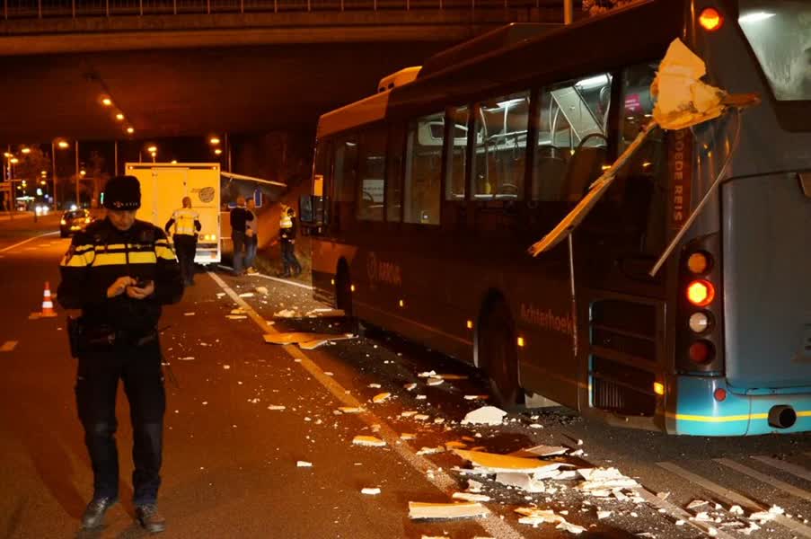 Het ongeval gebeurde rond 19:15 uur ter hoogte van de tunnel onder de snelweg A18 op de Ettenseweg in Doetinchem. Het busje met aanhanger schampte door nog onbekende oorzaak de passagiersbus, met flinke schade tot gevolg. Door de botsing ontstond er een ravage van onder meer piepschuim en worst op de weg.