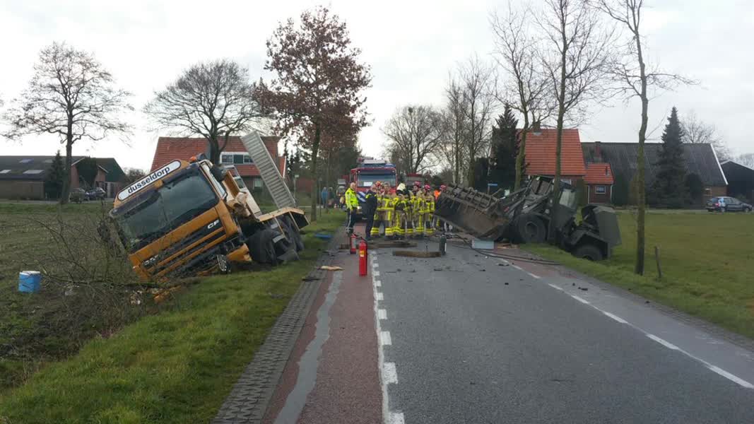 Het ongeval gebeurde vrijdagmiddag rond 5 uur. De vrachtwagen en shovel kwamen in tegengestelde richting op elkaar afrijden. Waarschijnlijk is een van beiden op de andere rijhelft beland, waardoor ze met elkaar in botsing kwamen. De vrachtwagen en shovel belanden daardoor aan weerszijden naast de weg, in de sloot.