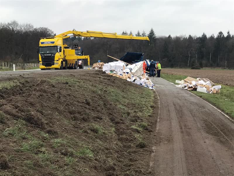 De vrachtwagen reed rond 07.30 uur vanuit Zeddam over de Beekseweg toen het misging. De bestuurder schrok van een inhaalmanoeuvre van een tegemoetkomende automobilist, waarbij de aanhanger achter de vrachtwagen in de berm terecht kwam. Deze schaarde daarbij, waardoor de ravage ontstond.