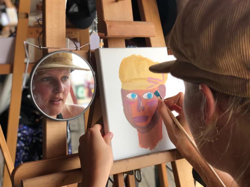 Bezoekers van de Zwarte Cross die genoeg hadden van de drukte konden zich even terugtrekken op de Theaterweide, om bij het Rijksmuseum een zelfportret te schilderen. Een selectie van de portretten kwam in de tentoonstelling te hangen en het was voor de schilders een leuke verrassing om die van hen terug te zien aan de muur.
