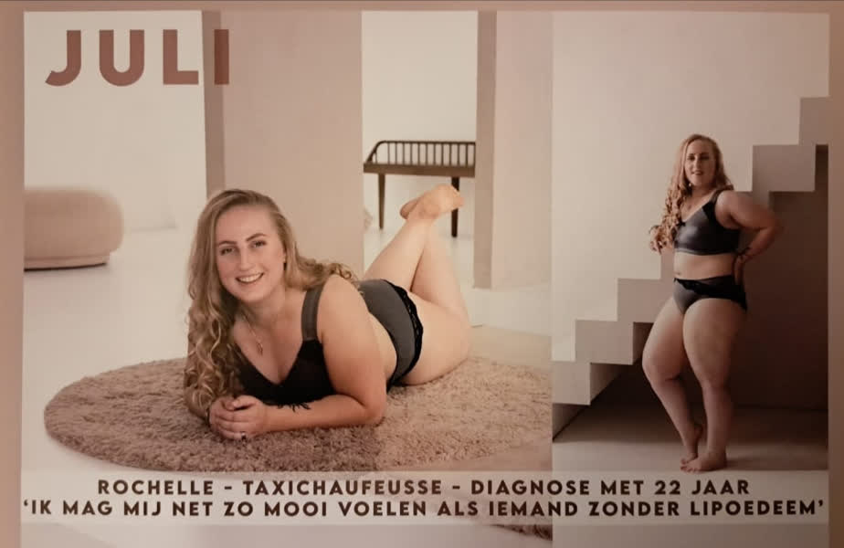 “Ik dacht in het begin, dit ga ik niet doen”, vertelt de 26-jarige Roording. “Maar daarna dacht ik, ik ben inmiddels zo ver in de acceptatie, als ik dit ook nog zou doen, houdt niet heel veel mij meer tegen. Ik sta ook al in ondergoed op de crowdfundingsactie. Mede daardoor ben ik mee gaan doen.” De kalender wordt gemaakt door fotografe Chessarina Spaninks uit Tilburg. Ze heeft zelf ook lipoedeem en lymfoedeem en was tien jaar te laat met de diagnose, waardoor de ziekte zich vrij kon ontwikkelen. Ze hoopt nu anderen met deze kalender te kunnen helpen. “Ik probeer er nu bij anderen voor te zorgen dat de diagnose eerder wordt gesteld”, vertelt Spaninks. “Dat ze de beste hulp en steun krijgen die er is voor deze ziekte. Ik hoop dat deze kalender dat doet. En dat mensen de kalender met trots kunnen laten zien.”