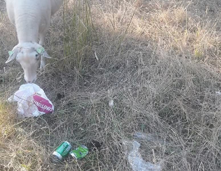De politie in Doetinchem stoort zich mateloos aan het dumpen van afval door jongeren in het park bij woonwijk De Huet. De grazende schapen komen door het afval in gevaar.