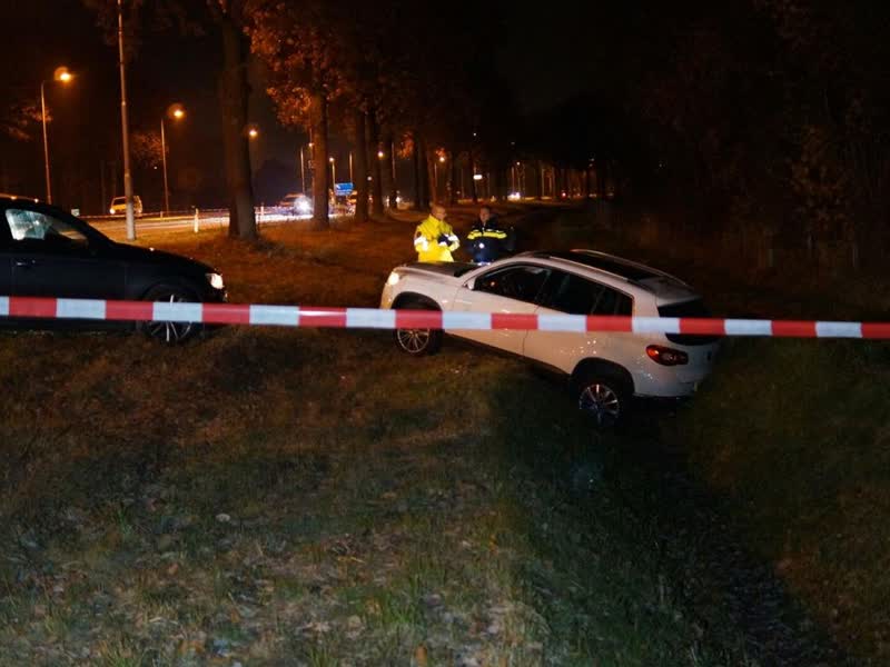 Even verderop wist een andere politieauto de vluchtende automobilist een zetje geven. Hierdoor belandde de auto in de sloot. De politie heeft de bestuurder aangehouden.