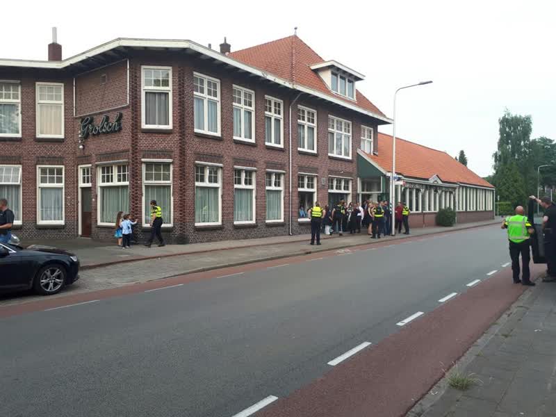 Het incident gebeurde in een zalencentrum aan de Groenloseweg. Volgens de eigenaar van de feestlocatie speelde een van de gasten met een wapen en is er daarna mogelijk ook geschoten. Buurtbewoners zeggen meerdere schoten te hebben gehoord. Het is vooralsnog niet duidelijk wie daar verantwoordelijk voor is. Agenten in kogelwerende vesten fouilleerden iedere gast in de hoop het wapen aan te treffen. Ook was er een speciale opsporingshond aanwezig. Tijdens het onderzoek troffen agenten drie pistolen, twee stiletto's, twee tasers en enkele kogelhulzen aan.