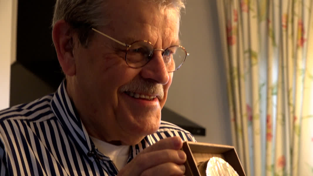 “Wat is dit dan toch? Wat een hoop mensen ineens, hoi allemaal”, zegt Schreurs als hij de voordeur opent. Daar staat ineens de burgemeester, samen met een grote groep van vrienden en familie. Ze hebben voor de gelegenheid taart meegenomen. De overdonderde Schreurs geeft iedereen een knuffel. Hij weet dan nog niet precies wat hem te wachten staat: “Ik voelde dat er iets in de lucht hing, maar wist nog niet precies wat.”