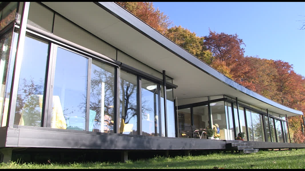 “Het mooie aan dit gebouw is dat het eigenlijk twee gezichten heeft. De grote entree is vanuit de mooie bosrand en aan de andere kant heb je het stalen geheel, dat prachtig uitkijkt over de weilanden”, zo licht Schreurs zijn ontwerp voor de bedrijfswoning uit. De jury verkoos zijn ontwerp boven de vakantiewoning van Tjeerd Bloothoofd en het Kunstgemaal van Erik Workel.