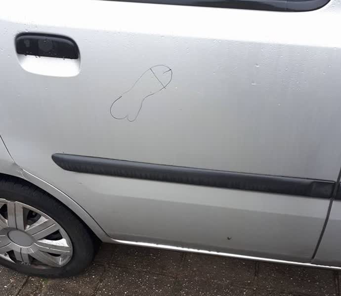De auto stond geparkeerd op het pleintje achter de Oostervoort. "Tussen vrijdag omstreeks 20.00 uur en zaterdag omstreeks 10.10 uur, hebben onbekenden deze personenauto voorzien van ongewenste afbeeldingen op portieren en een hakenkruis op de motorkap", zo laat de politie weten. Op de portieren staan verschillende piemels getekend.
