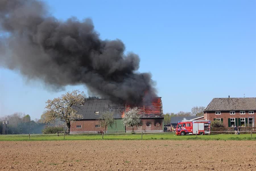 De schuur van een boerderij aan de Tulenstraat in het buitengebied van Breedenbroek is vrijdagmiddag in vlammen opgegaan. De rook van het vuur was tot in de verre omtrek te zien.