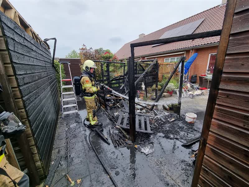 De brandweer werd rond 14.30 uur gealarmeerd voor het vuur bij de woning aan de Houtmolenstraat. Toen brandweerlieden ter plaatse kwamen waren omwonenden al bezig om de brand met behulp van een tuinslang te blussen. Ondanks de inzet kon niet worden voorkomen dat de schuur verloren ging.