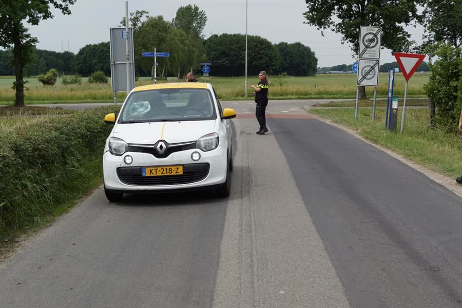 De auto heeft lichte schade opgelopen aan het portier en aan de voorruit. De bestuurder van de witte auto is met de schrik vrijgekomen.