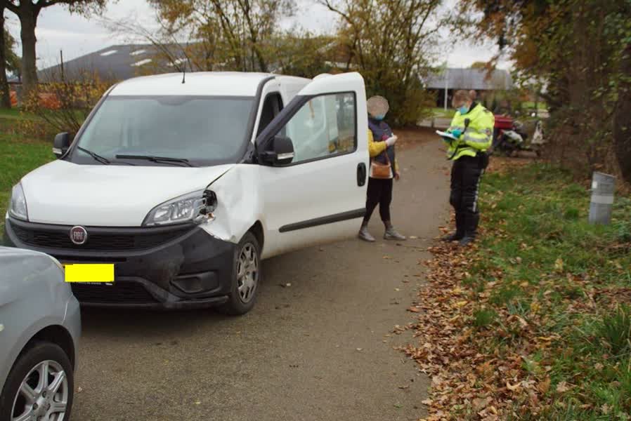 De bestelbus en de scooter hebben behoorlijke schade opgelopen. Ondanks de beschadiging aan de voorzijde kon de bestuurster van de bestelbus haar weg vervolgen.