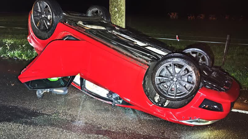 Een auto is zaterdagmiddag rond 14.15 uur is op de Varsseveldseweg (N330) bij Halle op de kop in de ...