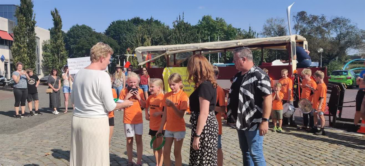 De tientallen leerlingen van De Wegwijzer lieten onder meer met pannen en pollepels van zich horen bij het gemeentehuis in Gendringen. De kinderen en ouders werden, bij afwezigheid van de burgemeester, opgevangen door wethouder Ria Ankersmit. “Het schoolbestuur heeft zelfstandig het recht om een school te sluiten”, geeft de wethouder aan. “Maar als gemeente raakt het ons zeker. In de leefbaarheid in een klein dorp als Sinderen is de school belangrijk. Daar proberen we zoveel mogelijk aandacht voor te hebben, om Sinderen en Sinderens Belang te blijven ondersteunen.”
