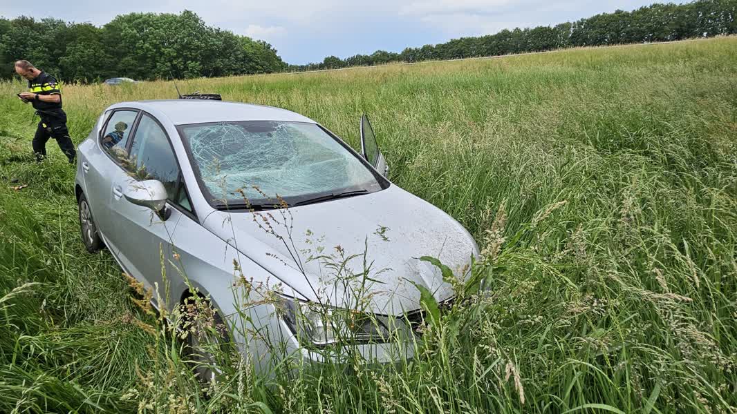 Slaperige automobilist schiet rechtdoor op afslag A18