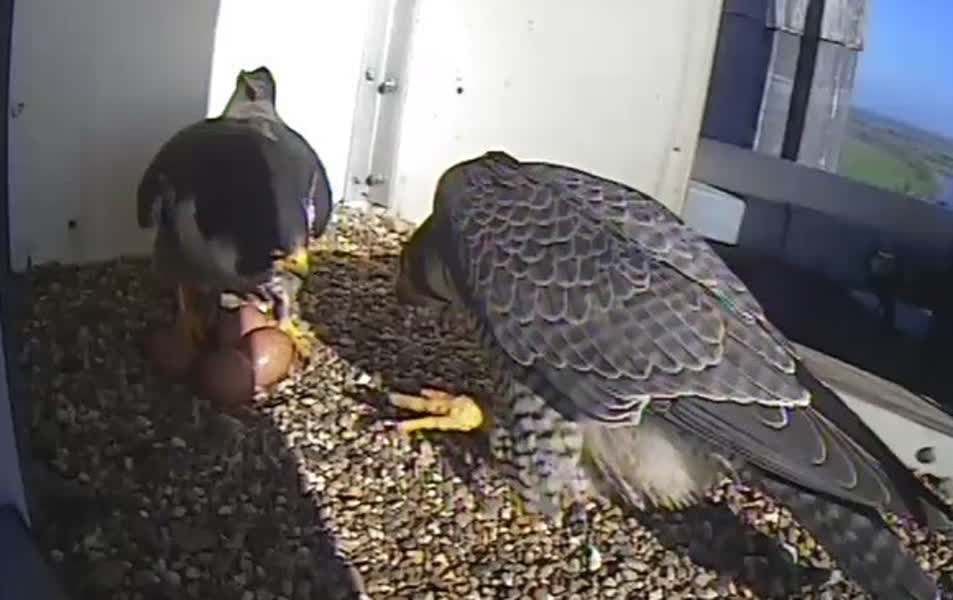 De slechtvalken, een beschermde vogelsoort, zitten op 90 meter hoogte in een speciale nestgelegenheid, die er in 2014 is geplaatst. De vogels hebben de toren nodig om te broeden en vanuit te jagen. Excursies kunnen voorlopig nog wel doorgang vinden, maar zullen worden gestopt tijdens het uitvliegen van de jongen. Dat gebeurt waarschijnlijk in juni.