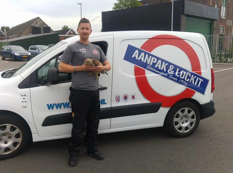 De slotenmaker belde eerst nog wel even zijn baas, om te zeggen dat het wat langer ging duren. Hij heeft de gewonde buizerd overgedragen aan medewerkers van Dierenambulance Doetinchem/Winterswijk. De roofvogel is vervolgens naar de opvang in Barchem gebracht.