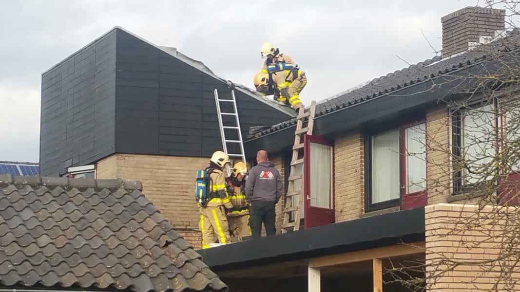 Smeulend hout op dak van woning in Lievelde