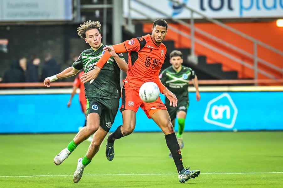 Halverwege de eerste helft kreeg Jesse van de Haar nog een opgelegde kans, maar hij stuitte in de korte hoek op Kayne van Oevelen. Ook een vrije trap van Rio Hillen, die werd toegekend na een overtreding op Donny Warmerdam, trof geen doel.