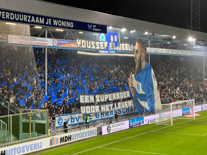 Het hoogtepunt van de tweede helft, en misschien wel van de hele wedstrijd, vond plaats in de 73e minuut. Publiekslieveling Youssef El Jebli maakte zijn rentree op De Vijverberg en kreeg naast een staande ovatie ook een prachtig spandoek cadeau.