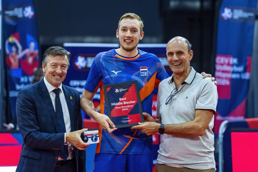 plannen om aan te sluiten bij de Europese subtop. Daarom wordt er dit jaar een gemengde competitie met de Belgische topclubs gespeeld. Een goede stap, vindt Wortelboer: “De tegenstander op het jeugd-EK spelen in hun eigen competitie op een veel hoger niveau. Die zijn qua techniek en kracht een stuk verder dan de Nederlandse jongens. Zij hebben de luxe dat zij in hun eigen land op hoog niveau kunnen volleyballen. Onze competitie is nu nog een opstapje om naar het buitenland te gaan.”