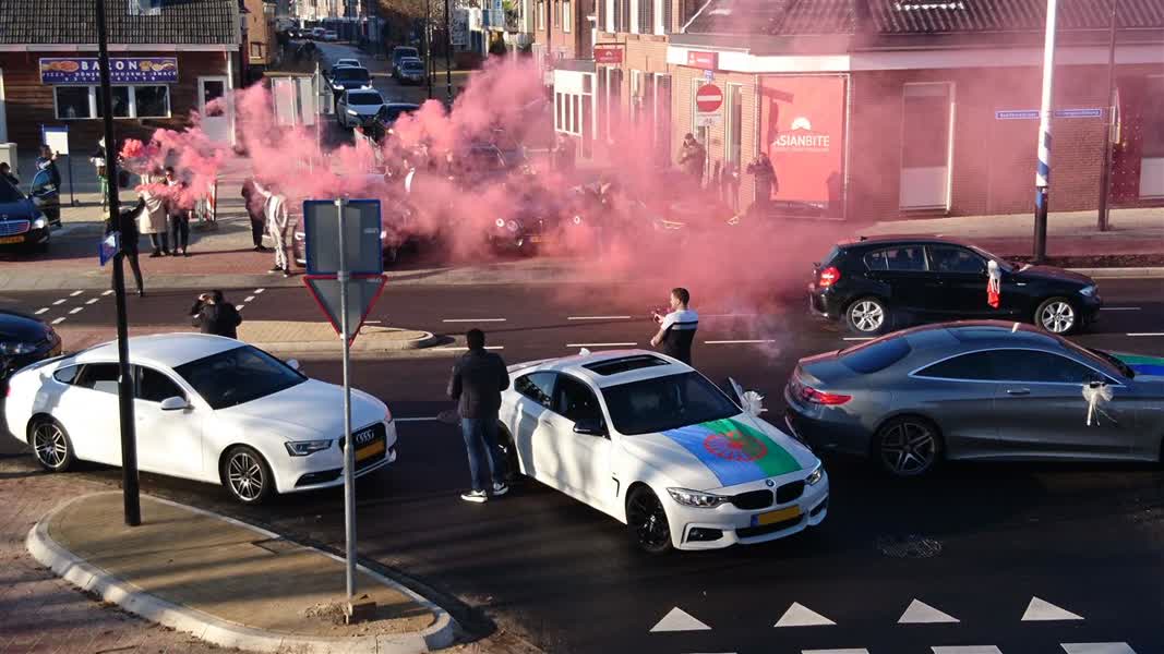De politie onderzoekt het gedrag van een trouwstoet in het centrum van Doetinchem. De stoet blokkeerde zaterdagmiddag al toeterend een kruising bij de stad, terwijl diverse deelnemers fakkels afstaken.