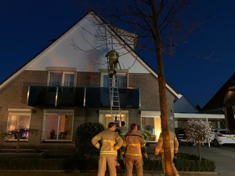 De brandweer zette een ladder tegen de woning aan en heeft de boord verwijderd om verdere schade te voorkomen. Daarna keerden de hulpdiensten terug naar de kazerne.