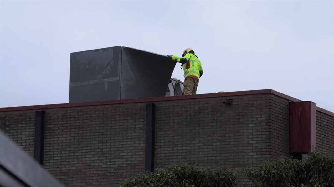 De brandweerlieden zijn op het dak geklommen en zagen dat er een wandplaat los zat bij het object. Omdat de plaat vrij los zat, hebben ze deze weggehaald. Om ergere schade te voorkomen, hebben ze de rest van het object verplaatst naar een plek op het dak met weinig wind.