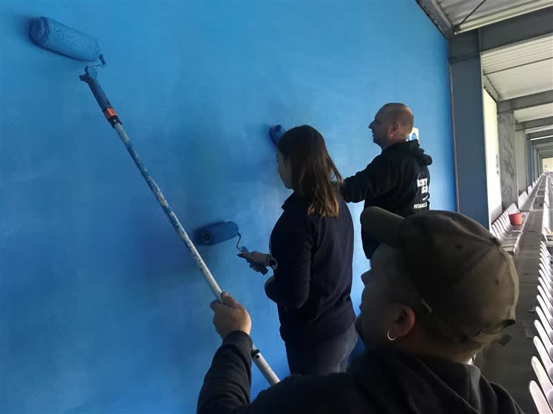 "In no time waren er al meer dan twintig aanmelden", aldus supporterscoördinator Dennis van Amerongen. Ruim dertig supporters hadden zich opgegeven om een helpende hand te bieden. "Het zijn er bijna teveel, maar fantastisch dat er zoveel mensen zijn." Volgens Hans Martijn Ostendorp was de opfrisbeurt wel nodig. "Als je naar de wanden keek, dan waren die wel wat verweerd", vertelt de algemeen directeur. "We willen natuurlijk wel onze blauw-witte kleuren goed voor het voetlicht hebben."