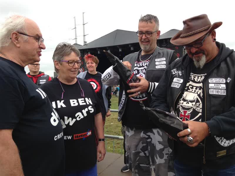 “Zes jaar geleden zijn mijn vrouw en ik ermee begonnen”, zegt voorzitter van Huntendwarspop Gert Rebergen. “Wij worden een dagje ouder en wij willen wat minder verplichtingen op ons nemen.” Voor hem was het niet moeilijk om een waardige vervanger te vinden. “Ik ben de voorzitter van NBS twee jaar geleden tegen gekomen en we hebben gewoon een klik met elkaar”, aldus Rebergen. Toch vinden de mannen van tattooclub Natural Born Sinners het een spannende stap. “Zeker omdat er heel veel vertrouwen in ons wordt gesteld”, aldus president Remco Chervet.