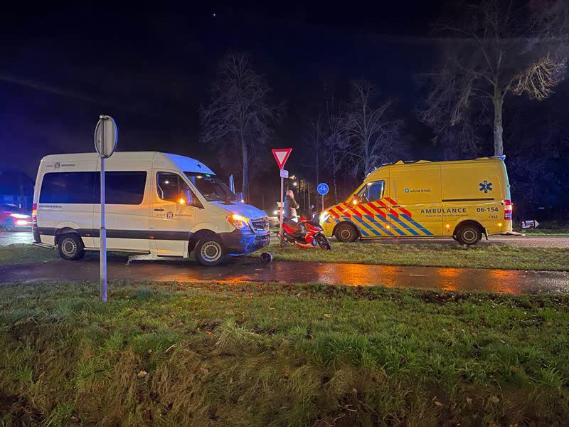 De kop-staartbotsing vond rond 17.30 uur plaats op de Nijverheidseweg. Door onbekende oorzaak zag de bestuurster van het taxibusje de scooter over het hoofd. Ze botste achterop de tweewieler, waarbij de scooterrijder ten val kwam.
