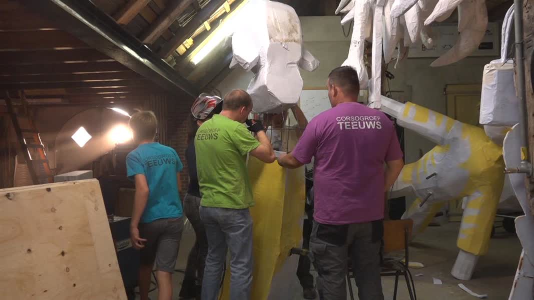 Martin Harbers is lid vanaf het eerste uur bij Teeuws en heeft de corsowagens de afgelopen tientallen jaren zien veranderen van eenvoudige wagens naar technische hoogstandjes. "Het was vroeger een stuk kleiner en daar waren we eigenlijk wel tevreden mee", zegt Harbers. "Je moet met de tijd mee en je ziet dat het corso nu tot iets groots is uitgegroeid. Dat houd je niet voor mogelijk." Harbers herinnert zich nog dat tijdens de beginjaren van Teeuws er bijna geen stijgers nodig waren om de corsowagen te bouwen. "We stonden er met trapladdertjes omheen en we hadden een vloer waar de attributen op kwamen te staan" zegt Harbers. "Daar kwam dan bijvoorbeeld een paard of een aardbol op te staan en daar werden de dahlia's op gespijkerd."