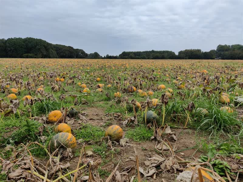 “Het grootste perceel is zo’n elf hectare”, vertelt groenteteler Gert Smits. “Dat is in totaal ongeveer 22 voetbalvelden groot. We telen hier oliepompoenen, maar ook consumptierassen, Halloweenpompoenen en sierpompoenen.” Een van de meest bijzondere pompoenen die de groentekwekerij teelt is de oliepompoen. Smits geeft aan de enige teler in Nederland te zijn van deze pompoen. “Wat de oliepompoen zo bijzonder maakt is dat alleen de pitten van de oliepompoen te eten zijn", laat Smits weten. "De pompoen wordt uitsluitend gekweekt voor het zaad. We hebben de kennis daarvoor grotendeels uit Oostenrijk gehaald, daar worden heel veel pompoenen gebruikt.”