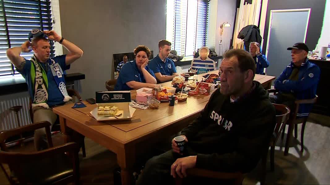 Het promotiefeest in Doetinchem moet nog even wachten na het gelijke spel van de Superboeren in Amsterdam tegen Jong Ajax. Vrijdagavond keken enkele supporters in de bestuurskamer van S.V. De Superboeren op De Vijverberg naar de wedstrijd.