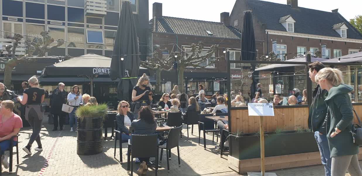 "Wij hebben het enorm gemist", vertelt stamgast Stien Heersens, die samen met haar man Hennie geniet van het mooie weer en een drankje op het Simonsplein. "Wij kwamen hier iedere dag als het goed weer was, dus we zijn heel blij dat het weer kan." Stien stond vooraan in de rij en wist als een van de eersten een plekje te bemachtigen. Een tafel was niet vanzelfsprekend, want het terras van Stadscafé Simons zat woensdagmiddag binnen tien minuten vol. "Wij stonden vijf minuten van tevoren klaar want we dachten: 'yes, we kunnen weer een drankje doen met wat lekkers'", vertelt Floortje Springeling, die met haar dochter Saar de versoepelingen aangreep om tegelijkertijd ook te gaan winkelen: "We waren op tijd bij het terras, want we hadden al verwacht dat het druk zou worden."