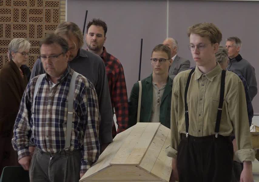 Drie dagen later vond de begrafenis van de bemanning plaats. Lichtenvoorde liep er in die tijd massaal voor uit. In de voorstelling ‘Spiegelingen’ is deze begrafenis ook te zien en komt de toespraak van dominee Van Dongen voorbij. “Dat was een voorzichtige, maar een nogal provocerende toespraak”, zegt Bonsen. “NSB-burgemeester Lamers kwam die dag kennismaken in Lichtenvoorde en riep de dominee ter verantwoording. Hij liet hem oppakken, waarna deze een aantal maanden gevangen zat.”