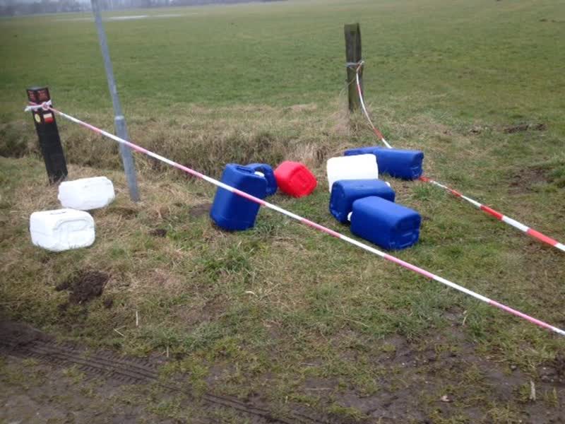 Op de hoek van de Holthuizerstraat en de Dijkhuizerstraat zijn de vaten dinsdagmorgen vermoedelijk gedumpt. In de vaten zat geen vloeistof. Wat er in de grote jerrycans heeft gezeten is niet duidelijk.