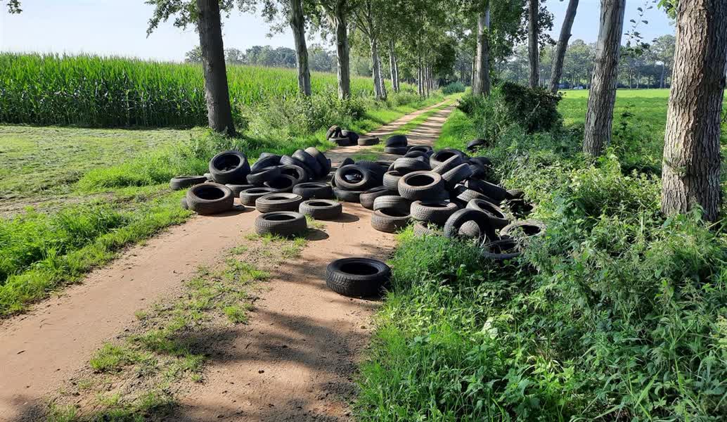 In het buitengebied van Aalten zijn tientallen gebruikte autobanden achtergelaten. De politie hoopt dat getuigen kunnen helpen in de zoektocht naar een dader.