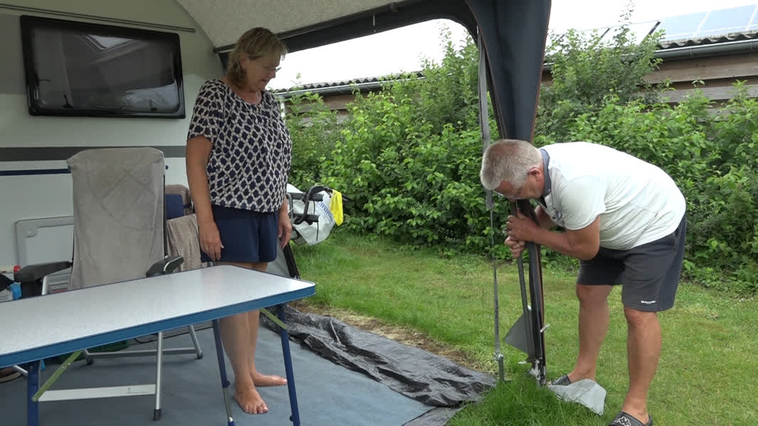 “Het is best wel gezellig dat getik op het dak”, aldus een van de bezoekers over de regen op hun caravan. “We zijn al veertig jaar getrouwd maar we vinden het nog steeds gezellig onder zo’n dakje met de regen”, vult haar man lachend aan. Een andere bezoeker van de camping ‘op’ Sinderen geeft aan dat het juist uitnodigt: “Je gaat toch iets doen. Thuis blijf je binnen als het regent, maar als je in een tent zit moet je wel iets ondernemen.” Sommige bezoekers kiezen ondanks de natte weersomstandigheden bewust voor een verblijf in eigen land om zo de hitte in Zuid-Europa te ontlopen: “Er mag wel een zonnetje bij, maar dat komt wel weer.”
