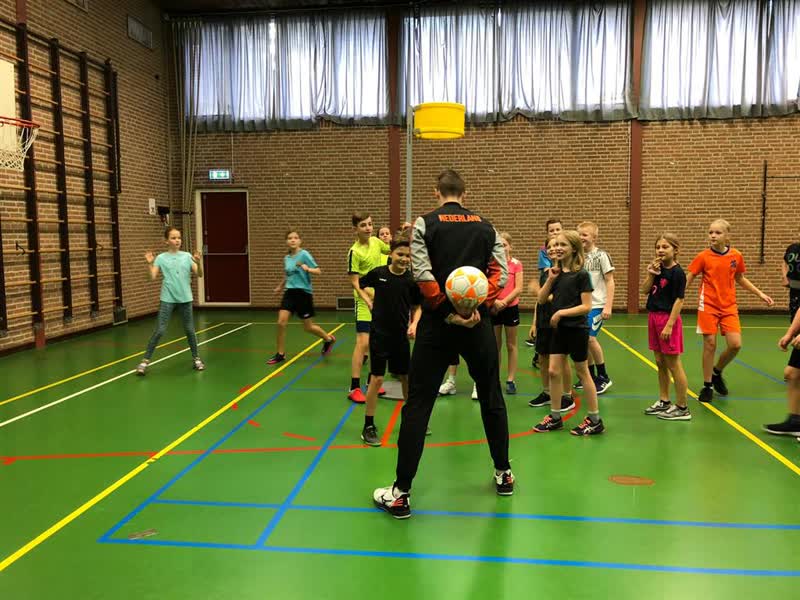 "Ik vond het wel bijzonder dat hij onze kleine school uit heeft gekozen", vertelt leerling Ties Heuberger. "Ik heb weleens van de sport gehoord, maar het trok me niet echt aan." Drie kwartier lang kregen de leerlingen les over korfbal van de jeugdinternational uit Duiven. "Ik laat ze vragen stellen en attributen bekijken", vertelt Dijkstra over zijn aanpak. "Daarna geef ik nog een clinic, waarin ik de kinderen enthousiast wil maken over de sport. Ik hoop vooral dat de kinderen meer gaan bewegen."