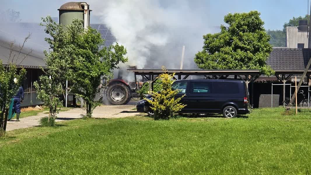 Op het erf van een boerderij in het buitengebied van Aalten is maandagochtend een tractor volledig uitgebrand. Het landbouwvoertuig vatte door een nog onbekende oorzaak vlam.